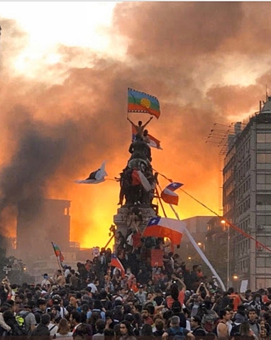 Alza de 30 pesos en la tarifa del metro desencadena el caos. Los jovenes evadiendo el metro dando a conocer el enojo con el estado a tanto aprovechamiento con el "pueblo" . El 18 de octubre se inicia la mayor crisis social donde se comienza a evidenciar graves violaciones a los derechos humanos . A esta marcha no solo estan presentes los jovenes si no tambien se une a ésta : padres, madres, adultos mayores, profesores.