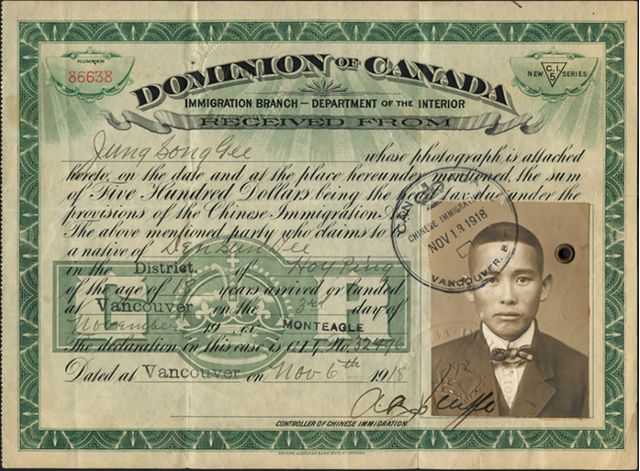 The Chinese Immigration Act goes into effect. The Head Tax is increased to $100.