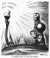 The Voting Rights Act of 1965 outlawed discriminatory voting in the southern states and outlawed literacy tests. The law guaranteed no one could be denied to vote based on his/her race or color. The law was signed by President Lyndon Johnson