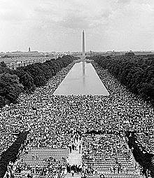 Dr. Martin Luther King Jr. gives a speech at the largest protest (at that point). There were over 200,000 people there.