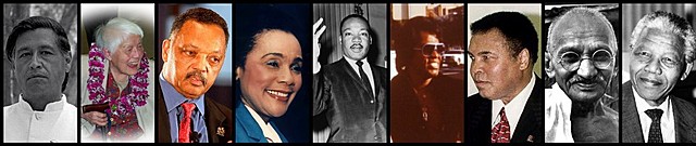 The movement was founded by Cesar Chavez. Its main focus was to help improve the working conditions and wages of farmers in America. They used nonviolence to accomplish their goals (protests, marches, ect). This took place in California.