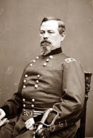 First major land battle of the Civil war. Defeated. Although McDowell knew that his troops were inexperienced and unready, and protested that he was a supply officer, not a field commander, pressure from the Washington politicians forced him to launch a premature offensive against Confederate forces in Northern Virginia. His strategy during the First Battle of Bull Run was imaginative but ambitiously complex, and his troops were not experienced enough to carry it out effectively, resulting in an