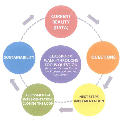 All faculty participate in the classroom walkthrough process with colleagues. Members collect data for small and large faculty debrief sessions. School leaders may create an online environment for sharing observations.
