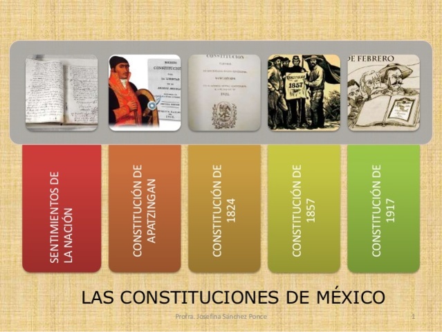 Principios: Fue una constitución de ideología liberal redactada por el autor del Congreso Constituyente de 1857 durante la presidencia de Ignacio Comonfort. Fue jurada el 5 de febrero de 1857. Estableció las garantías individuales a los ciudadanos mexicanos. La libertad de expresión, libertad de asamblea, libertad de portar armas. Reafirmó la abolición de la esclavitud, eliminó la prisión por deudas civiles. -