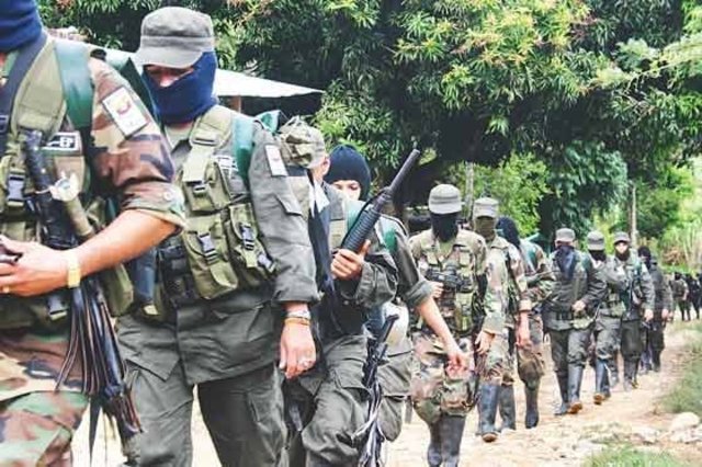 Guerrilleros de la UC-ELN formando en un campamento del norte del país. Hacia 1991.