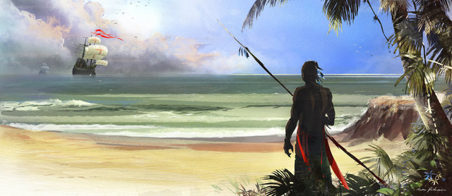 Cristóbal Colón llega a la isla de Guanahani, luego va adentrándose en el Caribe, confundiendo Cuba con Cipango (Cipango sería hoy en día Japón). El Santa María naufragia y se asientan en la Española (hoy Haití). -
