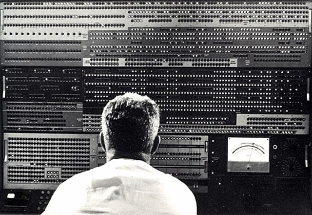 Conceived by Harvard physics professor Howard Aiken, and designed and built by IBM, the Harvard Mark 1 is a room-sized, relay-based calculator. The machine had a fifty-foot long camshaft running the length of machine that synchronized the machine’s thousands of component parts and used 3,500 relays. The Mark 1 produced mathematical tables but was soon superseded by electronic stored-program computers.