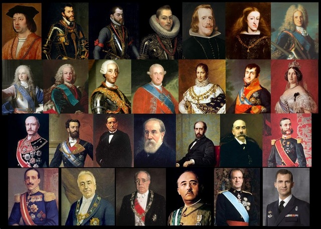 -Juan-Carlos I, 1938-...., Rey de España de 1975 a 2014 (abdica en su hijo) -Felipe VI, 1968- ...., Rey de España de 2014 a actualmente