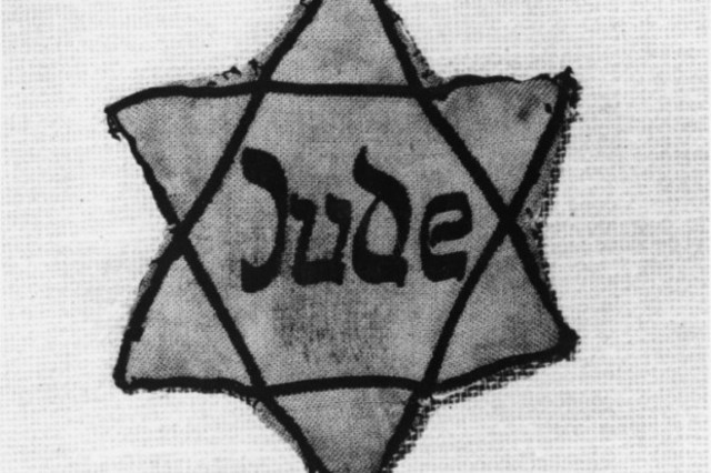 Juden müssen einen Judenstern tragen. Herr Schneider und der Rabbi müssen die Sterne auf die Oberbekleidungen selbst nähen.