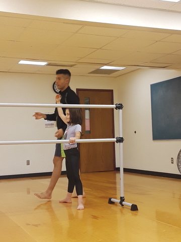 The student is first introduced to concepts of using the body to make shapes. A 2-minute video is being played for them to move along with.