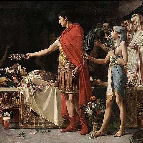 Antonio continuó sus conquistas por oriente, donde conoció a Cleopatra VII y se acomodó a la vida de Alejandría. Octavio aprovechó su mala gestión para desprestigiarlo. -