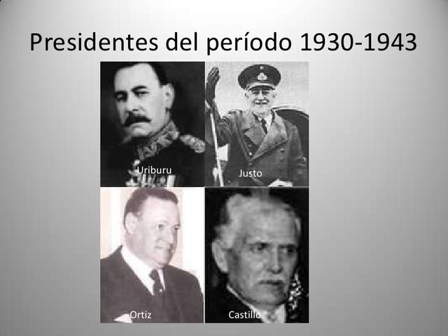 La fórmula Ortiz-Castillo triunfa en las elecciones de 1937. En el plano político, se realizaron reformas en la justicia, enseñanza y cultura en general. También se propuso acabar con el fraude y la corrupción. Por otro lado, en el aspecto económico se destacó la neutralidad frente a la Segunda Guerra Mundial. Cabe aclarar que Ortiz delegó el cargo a su vicepresidente Castillo por problemas de salud, el cual luego se convierte en presidente de la Nación en 1942.