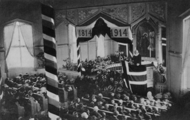 Grunnloven ble vedtatt av Riksforsamlingen på Eidsvoll 16. mai 1814, og datert og underskrevet den 17. mai 1814. Grunnloven var det sentrale dokument ved etableringen av Norge som selvstendig stat i 1814. Menn over 25 år kunne stemme, de måtte også være embetsmenn eller eie jord