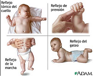Es un reflejo producido como respuesta desencadenada a un estímulo, y consiste en que el recién nacido muestra un movimiento de piernas en determinadas posiciones como si quisieran andar.