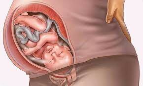 El bebé mide aproximadamente 48 centímetros, 2 kilos o 800 gramos aproximadamente, se posiciona su cabeza hacia abajo, listo para nacer. -