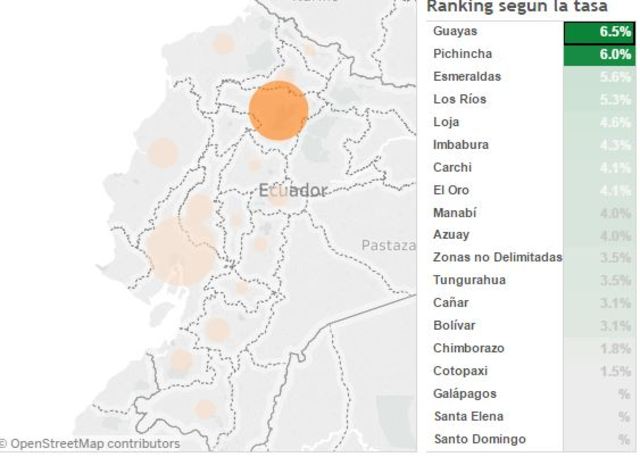 En el año 2007 la tasa de desempleo fue de un 3.5%, la zona Sierra fue el sector con mayor porcentaje de desempleo