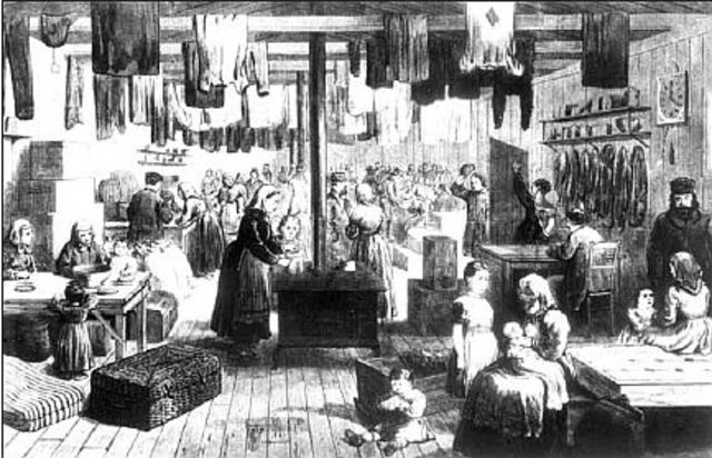 The growth of American metropolis was contributed largely by the massive influx of immigrants coming into the U.S.. People from various parts of the globe left their homes and migrated to the U.S. fleeing famine, crop failure, rising taxes, as well as job and land shortages 1. Immigration led to the development of urban cities, such as temporary quarters for Volga Germans in Kansas.