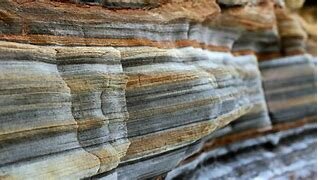Deposição de sedimentos em bacias de sedimentação, em camadas com diferentes características, ao nível da granulometria dos sedimentos, da cor e da sua composição química.