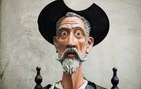 Don Quijote lucha contra los molinos de viento creyendo que son gigantes. -