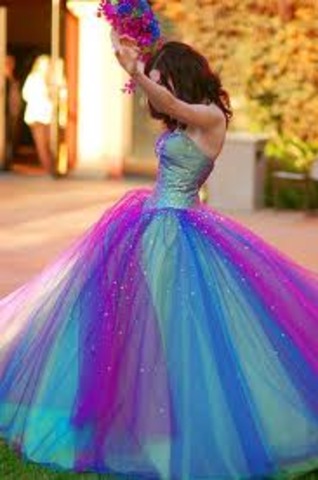 Tiered dresses with circular skirts, colorful, elaborate detailing in clothing.