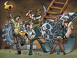 -la ley le chapelier prohibe las asociaciones de patrones y obreros popr que el maquinismo necesita hombres libres e iguales ante la ley y con una autonomia de voluntad absoluta para poder negociar cun contrato de trabajo con el nueño de la empresa -