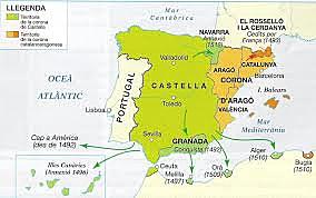 L'any 1479 Ferran II (rei de Castella i Aragó) i Isabel I (reina de Castella) es casen. Només va ser una unió dinàstica, i no territorial (perquè cada territori conservava les seves lleis i la seva religió).