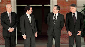 Leopoldo Calvo-Sotelo (1926-2008), ingeniero de caminos, canales y puertos. Sucedió a Adolfo Suárez en la presidencia del Gobierno durante la Transición. Monárquico, ocupó antes de su etapa en la presidencia los ministerios de Comercio, de Relaciones con la CEE –responsable por lo tanto de las negociaciones de adhesión-, y finalmente, vicepresidente primero del gobierno para asuntos económicos. -