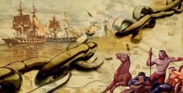 La Batalla, fue en aguas del río Paraná, en un recodo donde el cauce se angosta y gira, conocido como Vuelta de Obligado. La Confederación Argentina liderada por el brigadier Juan Manuel de Rosas enfrentó a(1793-1877) —quien nombró comandante de las fuerzas defensoras al general Lucio N. Mansilla (1792-1871)— la escuadra anglo-francesa, cuya intervención se realizó bajo el pretexto de lograr la pacificación ante los problemas existentes entre Buenos Aires y Montevideo.