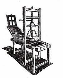 El alemán Johann Gutenberg inventa la imprenta a partir del desarrollo de sus tipos móviles. Básicamente la imprenta era un tipo de prensa de tornillo que transfería tinta oleosa de tipos móviles de metal a hojas de papel. Gracias a este invento el conocimiento se difundió masivamente y la alfabetización llegó a un mayor número de personas.