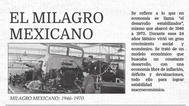 A partir de 1940 México inició una etapa llamada el milagro mexicano, esta etapa se caracterizó por ser de un crecimiento sostenido y fue el cambio hacia la formación de una nación moderna e industrializada.