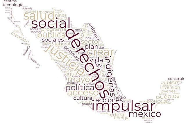 Desarrollo social y humano con calidad educativa, igualdad de oportunidades, fomento de la confianza ciudadana a través de la respuesta oportuna del gobierno. Crecimiento económico con competitividad y desarrollo sustentable. Democracia y soberanía en el territorio mexicano, transparencia en la Administración Pública y combate a la corrupción. Garantía de la seguridad pública, justicia apegada a derecho y respeto a los derechos humanos. Fuente de imagen: https://bit.ly/2Cizf7n