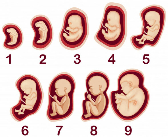 Entre la quarta i la vuitena setmana de gestació l’embrió creix fins una mida de 3 cm i es comencen a formar tots els teixits i òrgans. En arribar a la vuitena setmana ja té preconfigurades totes les estructures de l’adult, malgrat que únicament el cor és funcional. S'inicia l'etapa fetal.