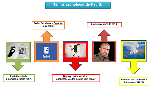 El temps cronològic Pau S. By sr.pau Jan 4, 2007 Naixement http://www.tempscronologicpau.com Nov 23, 2007 Esclat bombolla inmobiliària (econòmic) http://www.tempscronologicpau.com Feb 1, 2008 Arriba Facebook a Espanya (social) http://www.tempscronologicpau.com Period: Sep 7, 2008 to Jun 22, 2010 Escola bressol http://www.tempscronologicpau.com Period: Jan 20, 2009 to Jan 20, 2017 Presidencia Barack Obama (polític) http://www.tempscronologicpau.com Mar 9, 2010 Naixement del meu germà http://www.tempscronologicpau.com Period: Sep 15, 2010 to Jun 22, 2019 Educació primaria http://www.tempscronologicpau.com Apr 15, 2014 Bansky "Mobil Lovers" (cultural) http://www.tempscronologicpau.com Sep 5, 2015 Casament dels meus pares http://www.tempscronologicpau.com Nov 25, 2016 Mort Fidel Castro (polític) http://www.tempscronologicpau.com Sep 2, 2018 Viatge a Paris http://www.tempscronologicpau.com Period: Jun 10, 2019 to Sep 15, 2019 Incendis descontrolats a l’Amazones (climàtic-ecològic) http://www.tempscronologicpau.com Nov 10, 2019 30 aniversari de la caiguda del Mur de Berlín (sociopolític) http://www.tempscronologicpau.com