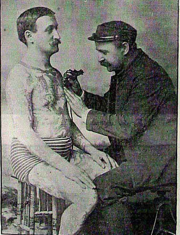 This story tells of the arrest of Charles Wagner for tattooing schoolboys, he was cautioned and released... "...In the meantime Agent King, of the Children’s society, had been busy, and arrested Charles Wagner, a young tattooer, of No. 23 ½ Bowery. Magistrate Deuel let him go on his promise to keep his needles away from young boys.