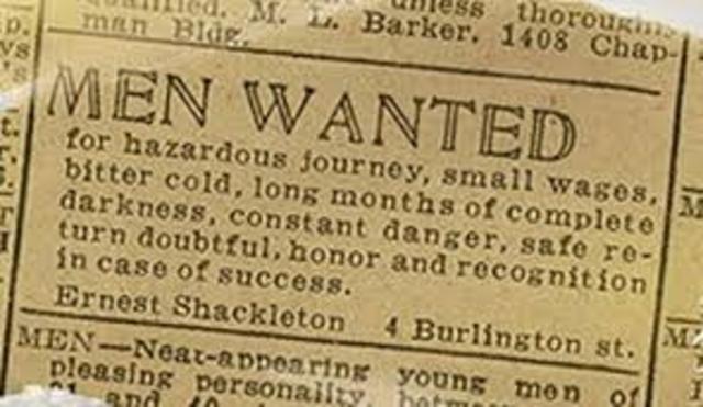 The London Times sends out a newspaper saying that the ship, Endurance, was going to sail. If Capitan Shackleton can make it across Antartica then he will be the first to do it, and hold the title for England.