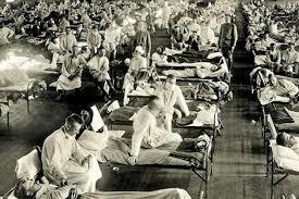 inicio en el año 1918 los primeros casos se registraron en Estados Unidos Fort Riley, en el estado de Kansas. Los síntomas eran: fiebre e insuficiencia respiratoria; la falta de oxígeno causaba un tono azulado en el rostro; las hemorragias encharcaban de sangre los pulmones y provocaban vómitos y sangrado nasal, de modo que los enfermos se ahogaban con sus propios fluidos.