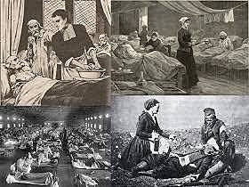Asiste a la guerra de Crimea en Inglaterra, para asistir a heridos y contribuyó con sus cuidados de aseo e higiene y estadística, bajar el índice de morbi-mortalidad. -