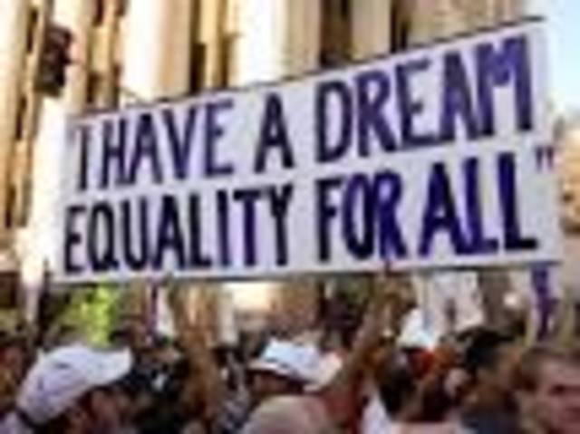 People protesting for equality for both race and gender.