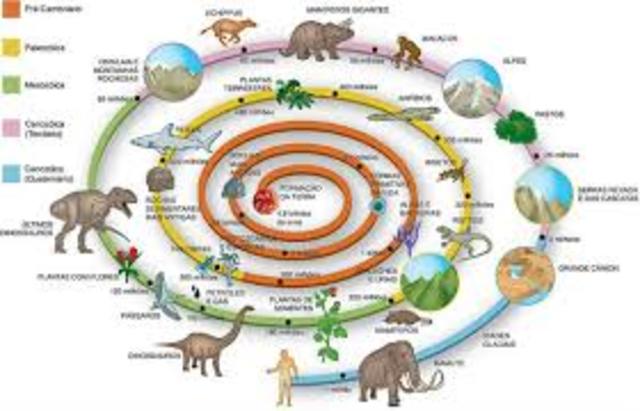 Desde la creación del mundo hasta hace 589 millones de años,Enfriamiento de la corteza terrestre,formación de los mares,aparición de los primero seres vivos.