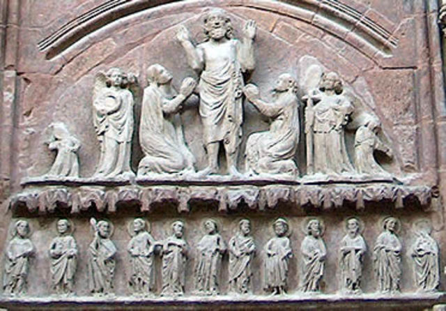 Se considera a las del pórtico oeste (el llamado real) de la catedral de Chartres (hacia 1145) el ejemplo más temprano del gótico, y significaron una revolución en el estilo y un modelo para generaciones de escultores, que parecen provenir, en la gran mayoría, de la región de Borgoña. Las esculturas de bulto redondo empiezan a independizarse de las paredes y a hacerse cada vez más autónomas.