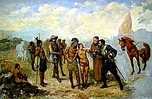 Llegada de Cristóbal Colón a Cariari en el Atlántico costarricense.