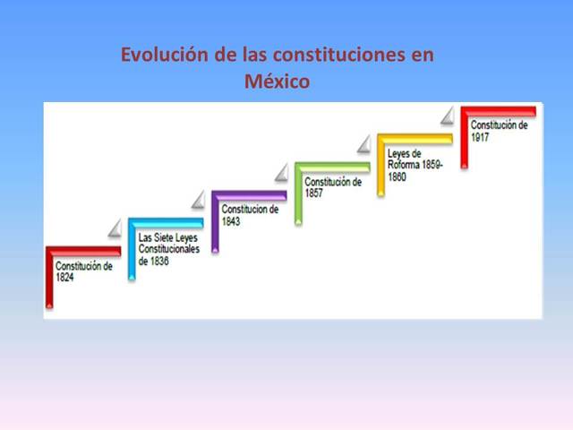 Etapas de la Constitución By Mary Lupis Period: Mar 18, 1812 to Mar 18, 1812 Constitución de Cadiz Period: Oct 22, 1814 to Oct 22, 1814 Constitución de Apatzingán Period: Dec 18, 1822 to Dec 18, 1822 Reglamento Provisional Político del Imperio Mexicano Period: Jan 31, 1824 to Jan 31, 1824 Acta Constitutiva de la Federación Period: Oct 4, 1824 to Oct 4, 1824 Constitución Federal de los Estados Unidos Mexicanos Period: Dec 29, 1836 to Dec 29, 1836 Leyes Constitucionales Period: Jun 12, 1843 to Jun 12, 2016 Bases de la Organización Política de la República Mexicana (junio 12, 1843). Period: May 18, 1847 to May 18, 1847 Acta Constitutiva y de Reforma Period: Feb 5, 1857 to Feb 5, 1857 Constitución Política de la República Mexicana Period: Feb 5, 1857 to Feb 5, 1857 Reformas a la Constitución Política de la República Mexicana del 5 de febrero de 1857 Period: Apr 10, 1865 to Apr 10, 1865 Estatuto Provisional del Imperio Mexicano (abril 10, 1865) Period: Feb 5, 1917 to Feb 5, 1917 Constitución Política de los Estados Unidos Mexicanos Period: Feb 5, 1917 to Feb 5, 1917 Constitución Política de los Estados Unidos Mexicanos