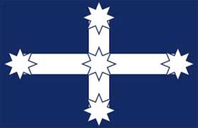 The miners meet again at the Bakery hill and the Eureka flag is raised. Peter Lalor had led the meeting and all the miners then burnt their licenses.