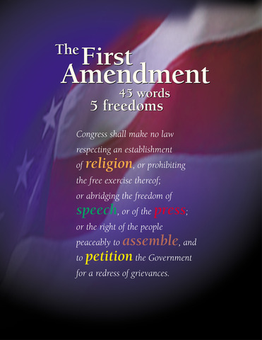 The Congress can’t support any one religion. They can’t take away freedom of speech and press. Lastly they can’t stop anyone from practicing a certain religion.