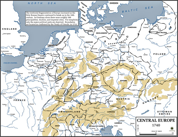 Maria Theresa, the daughter of King Charles VI, recieves land from her father. After Maria Theresa's husband, Charles Albert of Baravia, became the Holy Roman Emperor, Maria recieved part of the throne and she was known as emperoress. She inherited all the Habsburg lands.