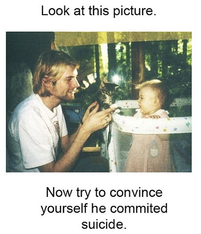 Cremation takes place only 6 days after finding the body. Rather a haste particularly when Cobain never expressed a desire to be cremated in the first place. You'd figure someone as stubborn with details as Cobain to at the very least put pen on paper as to how he wanted his body to be dealt with after taking his own life. Also why would a guy who abhorred violence want to leave behind a junkie mess AND shot face as the last memory when he had all the time in the world to do it unobtrusively?