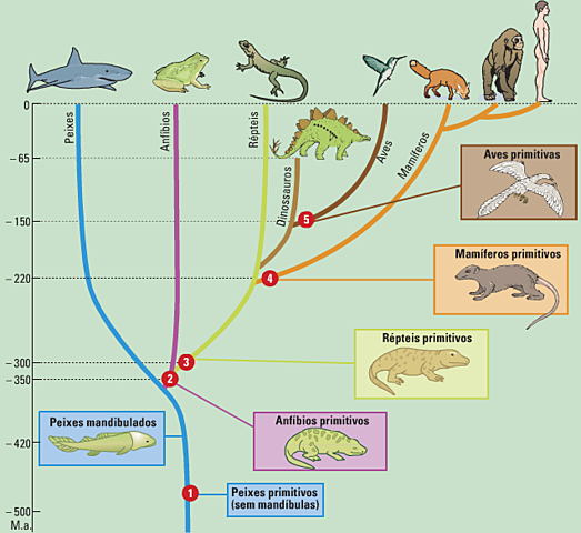 Os oceanos primitivos do período Cambriano, cerca de 510 milhões de anos atrás, deram origem aos primeiros tipos de peixes, denominados de ''Ostracodermas''. ... Eram peixes que não apresentavam mandíbulas, tendo o corpo recoberto por placas ósseas.