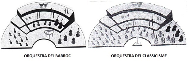 - Orquestra caracteritzada per un protagonisme destacat de la famíla de la corda, a la que s'hi podran afegir instruments de vent, normalment en parelles, que reforçaran la sonoritat del conjunt. -