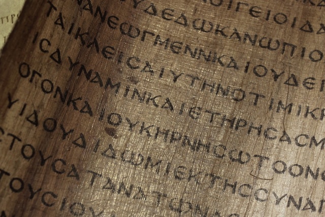 Los griegos habían adoptado el alfabeto fenicio y lo adaptaron a su propia lengua, donde las vocales y consonantes eran representadas por un símbolo distinto. Se crearon variantes del alfabeto. Una es el calcídico, que se utilizó al oeste de Atenas y en el sur de Italia. La otra variante, conocida como griego oriental, se utilizó en Asia Menor. Los atenienses (aprox. 400 AC), adoptaron esta última