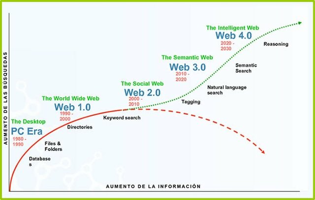 La web 4.0. empezó en el 2016 y se centra en ofrecer un comportamiento más inteligente y más predictivo, de modo que podamos, con sólo realizar una afirmación o una llamada, poner en marcha un conjunto de acciones que tendrán como resultando aquello que pedimos, deseamos o decimos. -